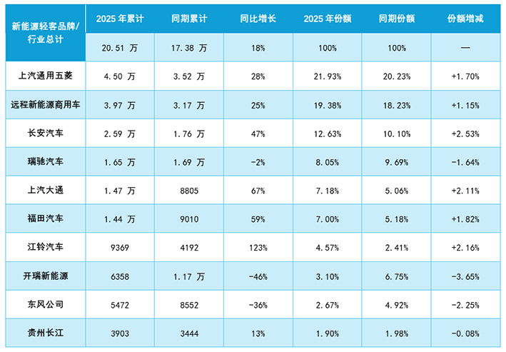 2025年前三季度新能源轻客销量TOP10企业盘点