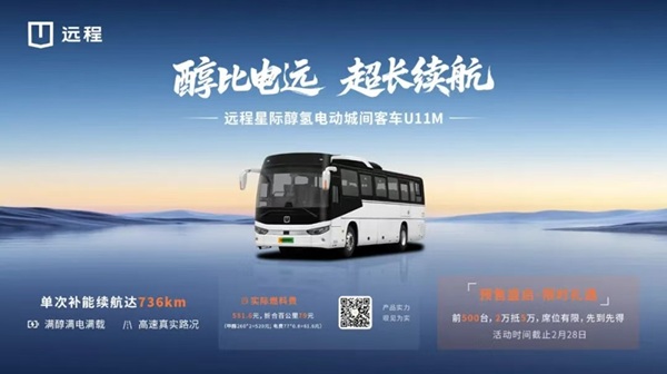 在新能源技术路线百花齐放的当下,远程星际客车依托集团 20 余年甲醇领域技术积淀,深耕“醇氢 + 电动” 技术路线,构建起覆盖多场景的产品矩阵。从全球首款醇氢电动城市客车 C8M,到综合续航突破 700 公里的C10M,再到面向城间市场的 U11M、U9M,以及专为香港市场打造的 U12M,丰富的产品序列标志着其醇氢电动技术从研发突破迈入市场化、平台化应用新阶段。