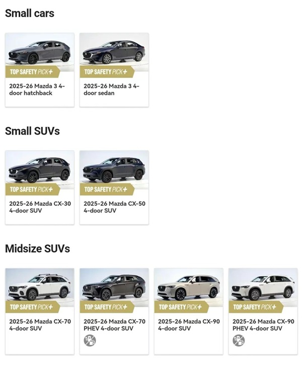 8 款车型全线斩获 TSP + 评级 马自达三连冠领跑全球汽车安全榜单