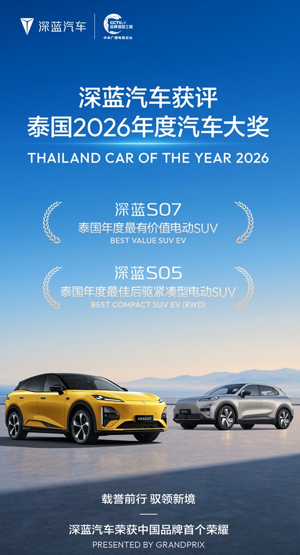 中国品牌首获殊荣!深蓝汽车携 S07/S05 斩获泰国 2026 年度汽车大奖